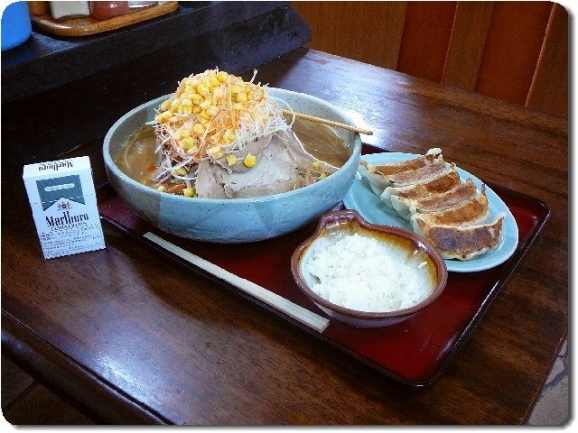 「ネギ味噌チャーシューめん+餃子+小ライス」のセット=長男ですな。