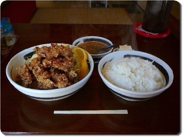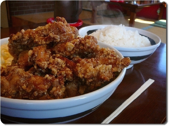 ご飯の器は、takaさんの写真とは明らかに違う大きいもの。から揚げも