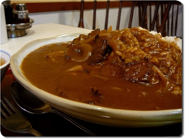 ・盛る直前に焼くタイプのビーフカレーで、ルーはサラッとした中辛。